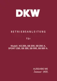 DKW KS 200, SB 200, SB 200A, Sport 250, SB 350, SB 500 und SB 500 A Bedienungsanleitung