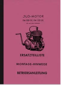 Bedienungsanleitung, Ersatzteilliste und Reparaturanleitung in einem, für die ILO Motoren FM 100 (K) 3,6 PS und FM 120 (K) 4 PS.