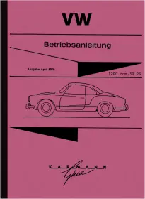 Bedienungsanleitung für VW Karmann Ghia Typ 14, 1200 ccm, 30 PS. Modelle 1955-1960, Limousine und Cabriolet. Ausgabe 1959.