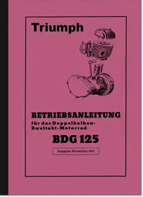 Bedienungsanleitung für das Triumph BDG 125 Doppelkolben 2-Takt Motorrad. Ausgabe 11/1951.