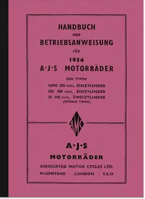 Bedienungsanleitung für AJS 16 MS 350 ccm, 18 S 500 ccm (1-Zylinder) und 2-Zylinder 500 ccm Spring-Twin Motorrad in deutsch. Ausgabe 1954.