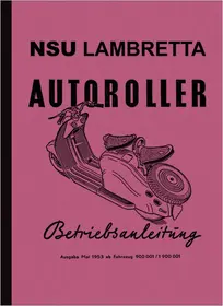 Bedienungsanleitung für NSU Lambretta Autoroller 125 ccm, mit Kickstarter. Ab Fahrzeug 900 001 / 1 900 001. Inklusive Schmierplan. Ausgabe Mai 1953, in deutsch.