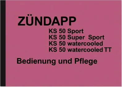 Bedienungsanleitung für Zündapp KS 50 Sport 530-510, KS 50 Super Sport 530- 500, KS 50 watercooled 530-010 und KS 50 watercooled TT 530-011, 6,25 PS, inklusive Schaltplan.
