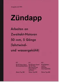 Reparaturanleitung für Zündapp 2-Takt-Motoren 50 ccm Typ 517, 5-Gang, 5,3 /6,25 PS, luftgekühlt und wassergekühlt. Motor Typ 284 für KS 50 Modelle. Ausgabe 7/1973.
