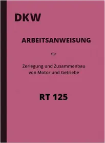 Reparaturanleitung (Zerlegung und Zusammenbau von Motor und Getriebe) für das DKW Motorrad RT 125 Nachkriegsmodell. Ausgabe in deutsch.