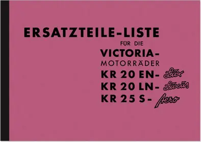 Ersatzteilliste für Victoria KR 20 EN-Lux/LN-Luxus und KR 25 S-Aero. Ausgabe etwa 1939.