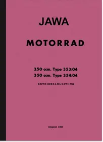 Bedienungsanleitung für Jawa 250 und 350 ccm Typ 353/04 und 354/04, 1- und 2- Zylinder Modelle mit 12 und 16 PS. Ausgabe 1962.