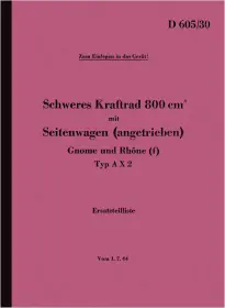 Gnome und Rhône AX 2 Schweres Kraftrad 800ccm Ersatzteilliste D 605/30