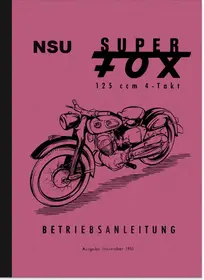 Bedienungsanleitung für das NSU Superfox 4-Takt, 125 ccm Motorrad. Ausgabe November 1955.