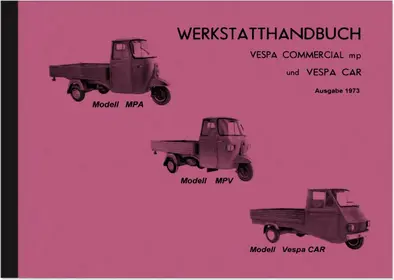 Reparaturanleitung für Vespa Car (Ape), Piaggio - Ape Car, Modelle MPA/ MPV/Car. Inklusive Schaltpläne, etc. Ausgabe 1973 in deutsch.
