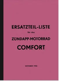 Ersatzteilliste für Zündapp Comfort. Ausgabe Oktober 1952.