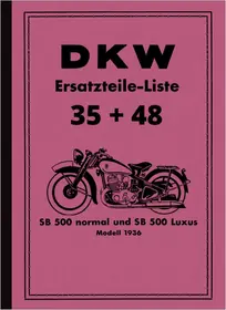 Ersatzteilliste für die DKW Motorräder SB 500 Normal und SB 500 Luxus. Ausgabe 1936, in deutsch.