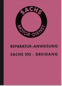 Reparaturanleitung für Sachs 100 ccm, 3-Gang-Motor 5,2 PS, Kickstarter und Handschaltung. Ausgabe 1958. Im Anhang Erweiterung für die Fußschaltung. Dieser Motor wurde unter anderem in die Hercules K 100 und K 101 verbaut.
