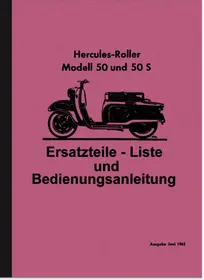 Bedienungsanleitung und Ersatzteilliste für Hercules Motorroller (mit Sachs-Motor) 50 und 50 S (Baugleich mit KTM- und Rabeneick-Roller). Inklusive Schaltpläne. Ausgabe Juni 1963, in deutsch.