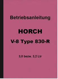 Bedienungsanleitung für Horch V-8 Typ 830-R mit 3,0 und 3,2 ltr. Motoren.