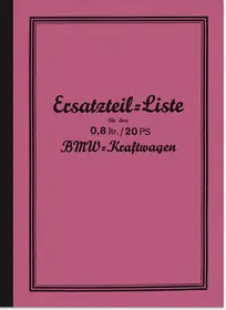Ersatzteilliste für den BMW Kraftwagen 0,8 ltr./20 PS, 3/20 PS. Ausgabe in deutsch.