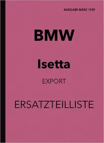Ersatzteilliste für BMW Isetta Export 250 ccm und 300 ccm, inklusive Cabrio, Lieferwagen USA-Ausführung und Tropen-Ausführung. Ausgabe März 1959, in deutsch.