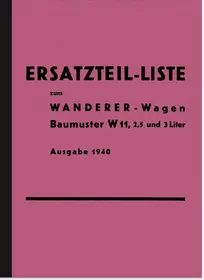 Ersatzteilliste für Wanderer W 11 2,5 und 3 ltr. Wagen. Ausgabe 1940, in deutsch.