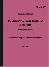 Bedienungsanleitung für Triumph BD 250 W. Dienstvorschrift D 605/19. Ausgabe 21.04.1942.