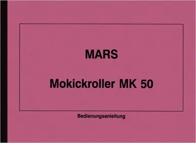 Bedienungsanleitung für Mars MK 50 Mokickroller mit 2,2 kW, 1-Zylinder, Gebläsegekühlt. Mit Elektostarter und Kickstarter. Inklusive Schaltplan. Ausgabe in deutsch.