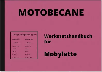 Werkstatthandbuch für Mobylette-Typen: AV43/44/46/59/40TL/142/144/146/140TL/N140TL/N150L-LC/50VL-VLC Mofa 25km/h und Moped 40 km/h. Ausgabe etwa 1970.
