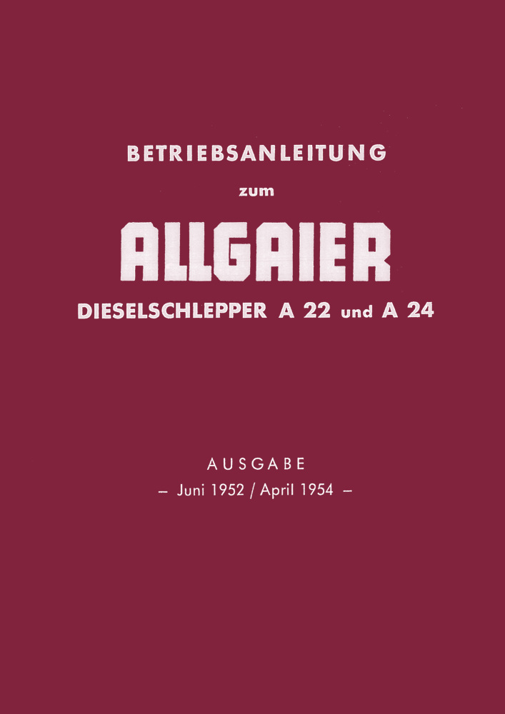 Bedienungsanleitung für den Allgaier A 22 und A 24 Traktor/Diesel-Schlepper.