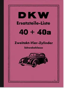 Ersatzteilliste (40 + 40a) für DKW Zweitakt-Vier-Zylinder Schwebeklasse.