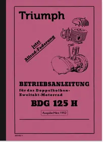 Bedienungsanleitung für Triumph BDG 125 H, Doppelkolben 2-Takt Motorrad, mit Allrad-Federung. Ausgabe März 1952, in deutsch.