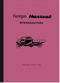 Bedienungsanleitung für Tempo Hanseat 3-Rad Kleinlastkraftwagen. Ausgabe 08/1952.