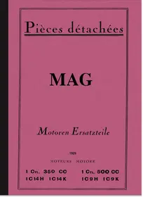 Ersatzteilliste für MAG Motosacoche 350 ccm und 500 ccm 1-Zylinder-Modelle wechsel- und kopfgesteuert, für alle Motoren von ca. 1925-1932. Ausgabe 1928, in deutsch und französisch.