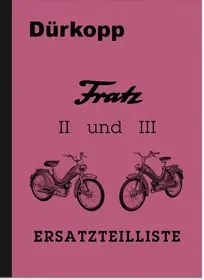 Bebilderte Ersatzteilliste für Moped Dürkopp Fratz 2 und 3, Rahmentank, Sachs-Motor, mit und ohne Hinterradfederung. Ausgabe etwa 1955, in deutsch.