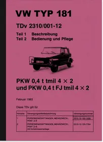 Bedienungsanleitung für Volkwagen Typ 181, 4-Takt Boxer-Motor (Bundeswehr-Kübelwagen). Ausgabe Februar 1983, in deutsch.