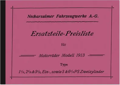 NSU Motorräder 1913 1,5 2,5 3,5 PS Einzylinder 3 6,5 PS Zweizylinder Ersatzteilliste