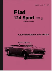 Hauptmerkmale und Daten des Fiat 124 Sport Spider/Coupé 1600, BC 1, BS 1. Ausgabe 4/1970, in deutsch.