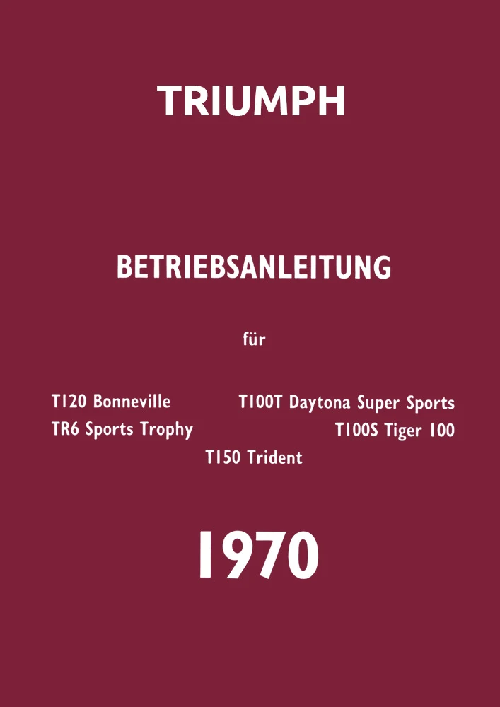 Bedienungsanleitung für Triumph T 120 Bonneville, T 100T Daytona Super Sports, TR 6 Sports Trophy, T 100 S Tiger und T 150 Trident.