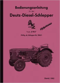 Bedienungsanleitung für Deutz Dieselschlepper D 40 L Typ D 40.2 luftgekühlt mit Motor F 3L 712, gültig ab Schlepper-Nr. 7855/1. Ausgabe 1962.