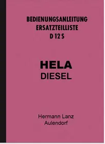 Bedienungsanleitung und Ersatzteilliste für Hermann Lanz-Aulendorf (Hela) Dieselschlepper D 12 S mit wassergekühltem MWM-Motor Typ KD 12 E und luftgekühltem MWM-Motor AKD 12 E. Ausgabe etwa 1955, in deutsch.