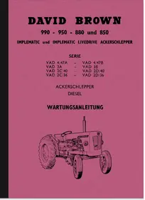 Anleitung für Wartung und kleinere Reparaturen, für folgende David Brown Typen: 990, 950, 880 und 850.