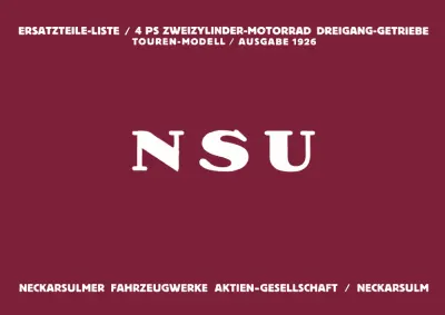 NSU 4 PS 3-Gang Touren-Modell 1926 Ersatzteilliste