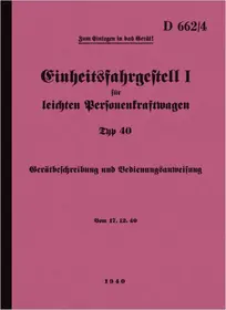 Beschreibung und Bedienungsanleitung für Stoewer Einheitsfahrgestell I Typ 40 für leichte PKWs. Heeres-Dienstvorschrift D 662/4. Ausgabe 1940, in deutsch.