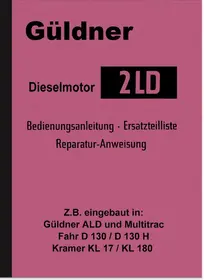 2LD: Kombinierte Bedienungsanleitung, Ersatzteilliste und Reparaturanweisung. Beinhaltet: Technische Daten, Bedienung, Pflege Wartung, Beschreibung der Baugruppen und Aufbau des Motors, elektrische Ausrüstung, Kupplung, Störungssuche usw. Dieser Motor ist z.B. eingebaut in folgenden Fahrzeugen: Güldner ALD. Ausgabe in deutsch.