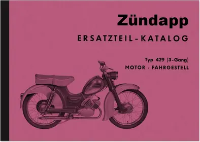 Ersatzteilliste für Zündapp Super Combinette Typ 429 (3-Gang), für Motor und Fahrgestell. Ausgabe etwa 1958-1960, in deutsch.