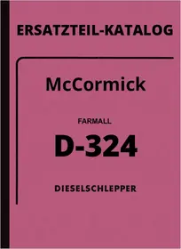 Ersatzteilliste für IHC McCormick Farmall Dieselschlepper D-324. Ausgabe etwa 1956, in deutsch.