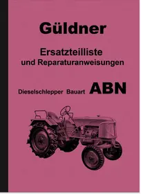 Ersatzteilliste inklusive einigen Reparaturanweisungen für den Güldner Bauart ABN Dieselschlepper mit Motor 2BN. Ausgabe etwa 1955/1956, in deutsch.