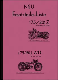 Ersatzteilliste für NSU 175 / 201 Z und NSU D-RAD 175 / 201 ZD. Inklusive technischer Daten, Ausgabe etwa 1930-1933, in deutsch.