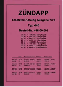 Ersatzteilliste für Zündapp Typ 446 2- und 3-Gang (ZD 10, ZD 20, ZD 25 TS, ZD 30, ZD 40, ZD 50 TS) mit Motor Typ 250 und 278. Ausgabe 07/1979.