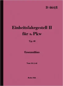 HORCH, AUTO UNION, FORD, Typ 40 Einheitsfahrgestell II für s. PKW mit HORCH 3,8 l-V-Motor und FORD 3,6-l-V-Motor, WH-NR.:D 664/8, Ausgabe Februar 1942