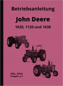 Bedienungsanleitung passend für John Deere Traktoren 1020, 1120 und 1630. Ausgabe in deutsch.