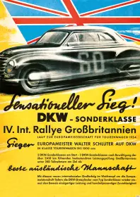 DKW Sonderklasse Int. Rallye Grossbritannien Walter Schlüter Poster Rennen Sieg 1954