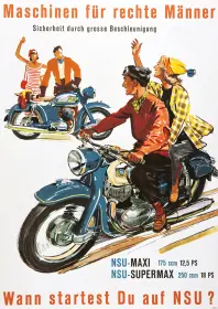 NSU Maxi Supermax 175 250 ccm "Maschinen für rechte Männer" Motorrad Poster